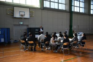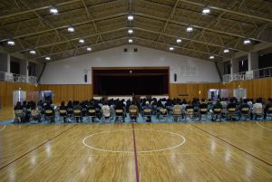 第1体育館での全体説明では、進路状況の報告やガイダンスの諸注意・心構えについて説明がありました。その後、希望進路別に会場を移動し、分科会を実施しました。