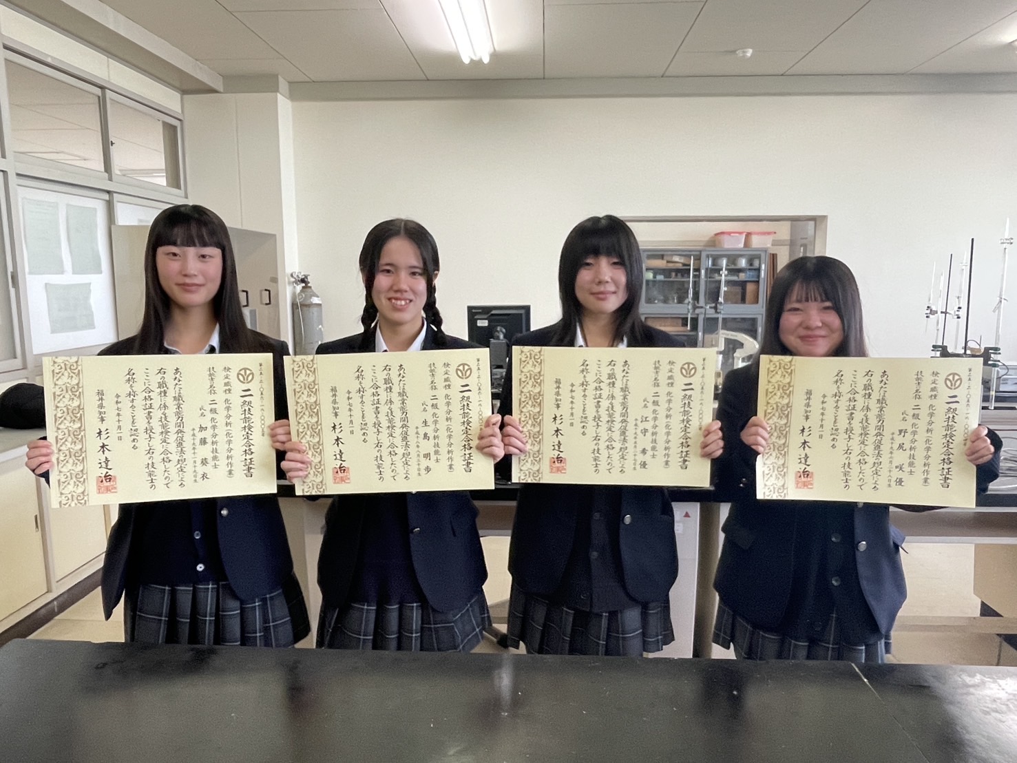2025.12.11 化学分析技能士/2級:3年生4名合格/3級:2年生9名合格