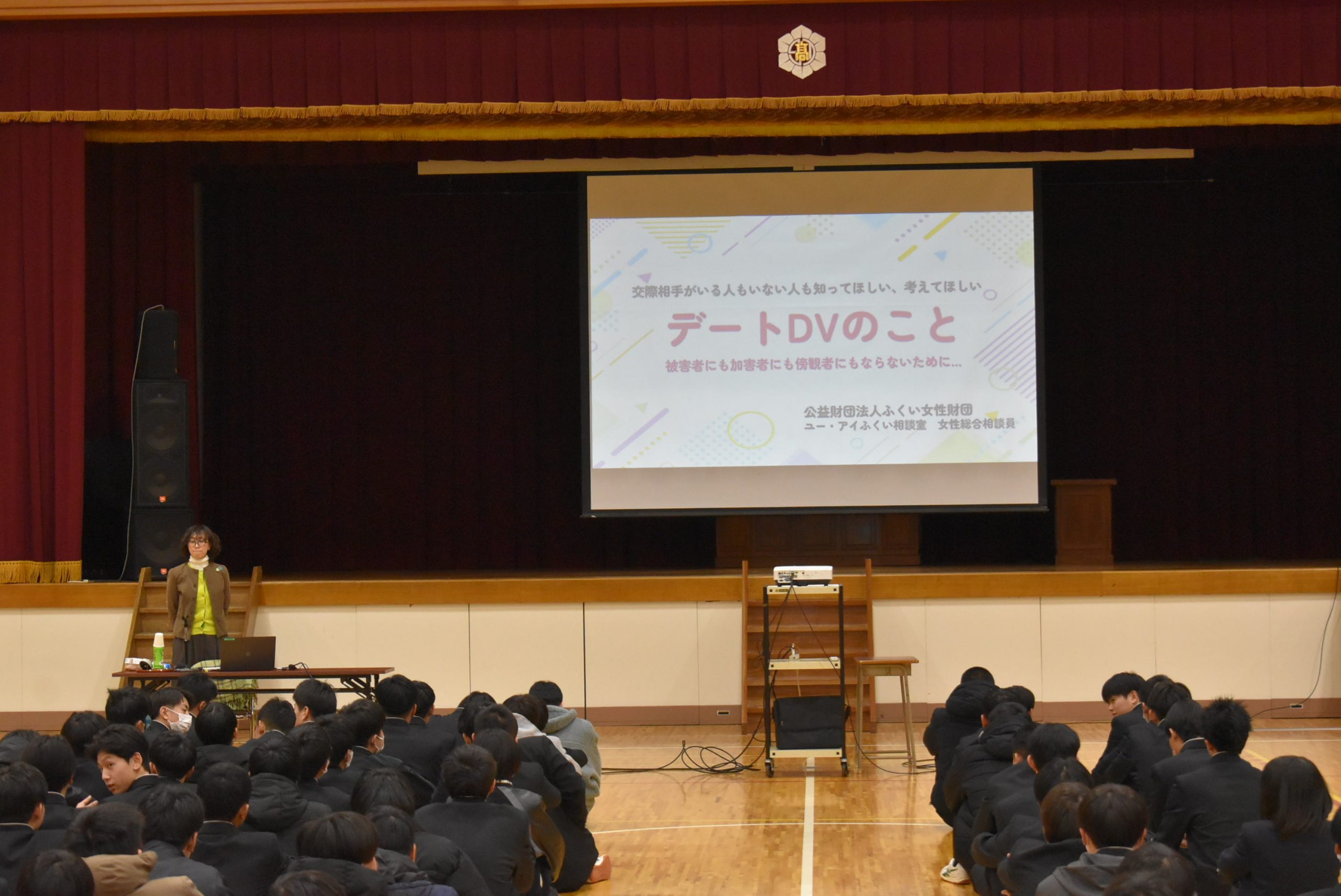 公益財団法人ふくい女性財団の女性総合相談員を講師にお迎えし、デートDVなど暴力について正しく理解することをテーマにご講演いただきました。