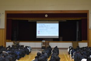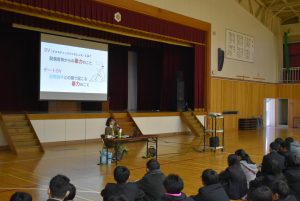学校行事第1体育館にて1・2年生を対象に保健講演会を実施しました。