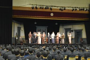 2023.11.14 芸術鑑賞 学校行事 2023.12.012023.12.11 2023.11.14 芸術鑑賞 芸術鑑賞を本校の第1体育館で行いました。 内容は、東京芸術座の「12人の怒れる男たち」でした。 殺人罪に問われた少年の評決を出すために、12人の陪審員たちが時には冷静に、時には感情を露わにしながら有罪か無罪かを話し合い、検証し、説得していくという物語でした。 それぞれの登場人物の人物像がありありと表現されていて、鑑賞した生徒達の心にも響くものがあったのではないでしょうか。