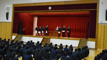 学校行事 2023.12.19 伝達表彰 2023.12.19 伝達表彰福井県英作文コンテストと危険物取扱者乙種全類取得者の伝達表彰を行いました。その後、昨日行われた球技大会の表彰を行いました。 2023.12.21 学校行事