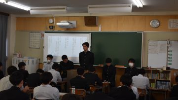 学校行事 2024.1.11 3年生からの話 2024.1.11 3年生からの話学科毎に、それぞれの進路を決めた3年生が2年生の教室に出向き、進路について話をしました。進学(大学、短大、専門学校)や就職(県内外民間企業、公務員)を内定した3年生(4~6名)が、後輩に対して自分の体験談や... 2024.01.12 学校行事