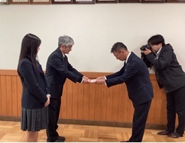 2025.12.1 北陸電力教育振興財団が本校に教育用備品(製氷機)を寄贈12月1日(月)に本校で贈呈式が行われ、北陸電力の梶崎晴康執行役員・福井支店長から加藤龍一校長と生徒会長の阪本結衣さんに目録が手渡されました。製氷機は保健室に設置させ...