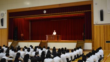 学校行事 2024.7.12 壮行会 2024.7.12 壮行会夏休みに開催される全国高校総体等の各種大会に出場する部活動の壮行会を行いました。日頃の練習の成果を存分に発揮して欲しいと思います。活躍を期待しています。 2024.07.26 学校行事