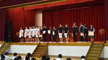 学校行事 2024.7.19 1学期終業式 2024.7.19 1学期終業式1学期終業式を行いました。校長先生は、始業式で話した「将来の夢を明確にしてください。」という話を今一度確認し、「3年生の皆さん、いよいよ勝負の夏です。準備はいいですか。皆さんが、皆さんの人生の中で、より強く、... 2024.07.26 学校行事